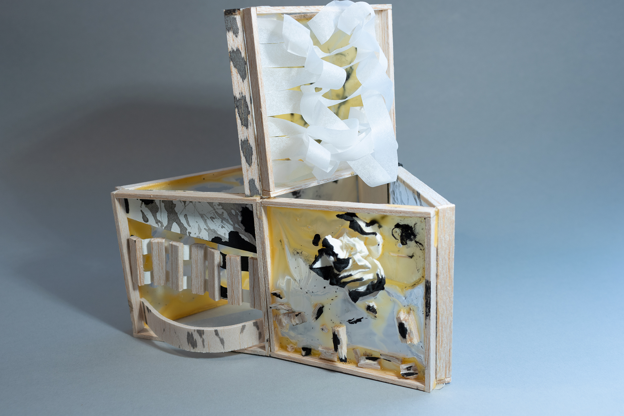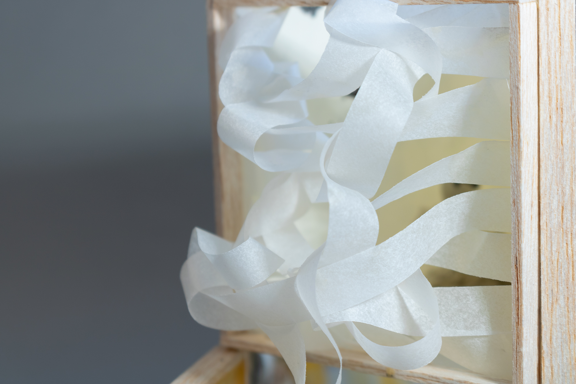 ![]() Danielle Muir, "Drip", 2020. Masking Tape, India Ink, Wood Glue, Tracing Paper, Printmaking Paper. 6" x 6". |